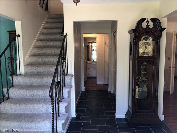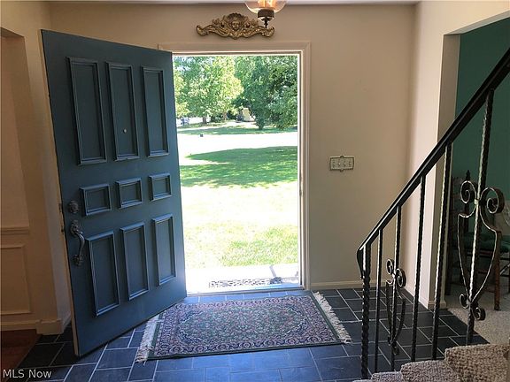 Spacious center-hall colonial in one of the most desirable neighborhoods in Solon. Features five bedrooms and 2.5 bathrooms. The spacious foyer has the living room to the left, and the formal dining room to the right. The formal dining room has French doors to the kitchen with plenty of cabinets leading to a spacious dinette area. The dinette area has a butlers pantry and a pocket door to the first floor laundry room which has a double closet, a pantry, and a double utility sink. Also on the first floor is the family room with fireplace, wet bar and sliders to the sun room. The sun room has jalousie windows throughout and a door that leads to the 18' x 12' deck. Beautiful hardwood floors are present throughout the upstairs and are featured in two of the bedrooms including the master bedroom. The other three bedrooms have carpeting. The master bath features his and hers closets and a shower. A Jack and Jill bathroom, with tub/shower, is off the hall and shared with a bedroom. Closets galore! The attached two car garage faces the backyard and has plenty of room for turning around. The wooded backyard has a small stream running through it with a bridge that leads to a large storage shed. New furnace and A/C was installed in May 2024, Water heater installed in 2013, updated electrical panel and sub panel with breakers. All appliances stay including washer and dryer. Bring your decorating ideas! One-year home warranty. Immediate occupancy.