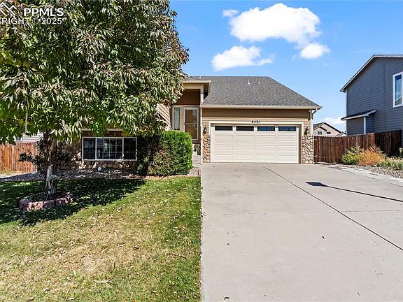 Don’t miss this beautifully designed 4-bed, 4-bath, 3-car garage home in the sought-after Painted Sky at Waterview community! Step inside and head upstairs to the heart of the home where an open kitchen, dining, and living space offers mountain views and abundant natural light. The entertainer’s kitchen is complete with a counter bar, custom glass tile backsplash, large pantry, and dining area that flows seamlessly into the living room and family room overlooking the backyard. A convenient half bath, oversized laundry room, and newer vinyl plank flooring throughout much of the home add comfort and style. Upstairs, the private primary suite features a generous walk-in closet and is tucked away from the secondary bedrooms for added privacy. Two additional bedrooms and a full bath complete the upper level. The lower level is perfect for guests or multi-generational living with a private junior suite setup that includes an oversized bedroom, ample closet and storage space, and a full bath. The 3-car tandem garage provides plenty of room for vehicles, toys, or tools, while the fully fenced backyard is ready for outdoor enjoyment. Ideally located for an easy commute to Peterson Space Force Base and Fort Carson, and just minutes from shopping, dining, and entertainment along Powers Blvd, this home combines comfort, function, and location—schedule your showing today!