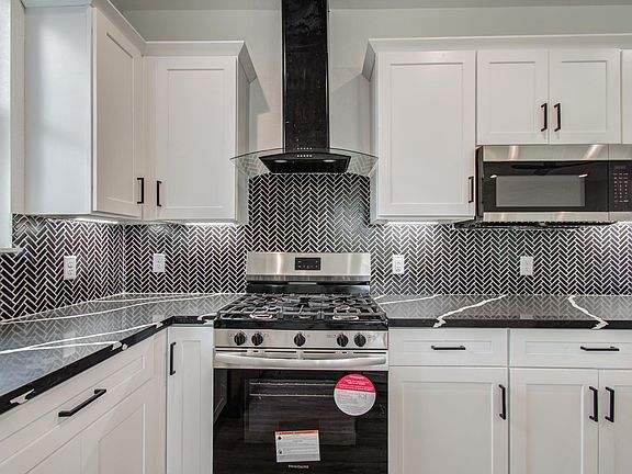 Stylish backsplashStainless-steel appliancesSpacious bedroomsBeautiful islandSleek quartz countertopsWalk-in closetDouble sinks