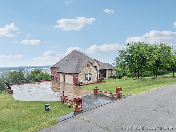 Experience refined living in Ridgeview Estates, perfectly situated across from the prestigious Stone Canyon Community. This elegant 4-bedroom, 3-bath residence offers a 3-car garage and a generous lot with ample parking. Enjoy sweeping views of the Port of Catoosa from your own backyard. Recent upgrades include a new water softener system, and a new pump and oxygen system for the aerobic septic, ensuring comfort and peace of mind. A rare blend of sophistication, space, and breathtaking scenery-this home is design to impress.