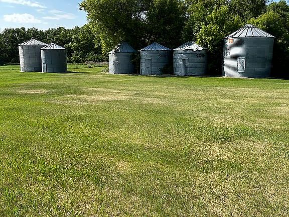 The 16.580 acres includes the home, a quonset with electricity that is 40 X 90 with a partial cement slab and a dirt floor that is ideal for storage and/or rental, and 6 smaller steel bins also providing storage or rental options.