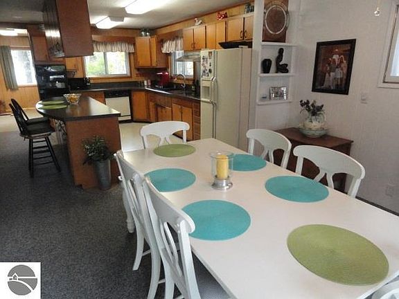 This gem of a property sits on 2 waterfronts. Beautiful Green Lake and the Betsie River. 100 ft on Green Lake, with 491 ft on the Betsie River. Property has a protected cove off of the river for docking boats from river to lake. Well maintained ranch home has 2 bedrooms and 1.5 baths. Currently having some remodeling being done in 2016. Walkout lower level has family room with f/p and workshop. Updates include: new addition with basement in 2004; new roof and 90+ furnace in 2008; new kitchen counter tops, vanity, and interior painting in 2010. Property is 2.23 ac. Has a 24 x 32 pole barn. Nicely wooded with hardwoods. All applncs incld. Back-up generator automatically comes on when power goes out. Heated sidewalk in the front. House next door for sale. Would make for a great summer family compound or great investment properties.