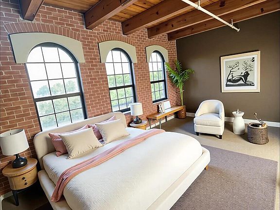 Exposed wood beam ceilingsGenerous storage spaceFloor-to-ceiling windowsNatural lightPrivate balconyOriginal brick wallsInterior courtyard