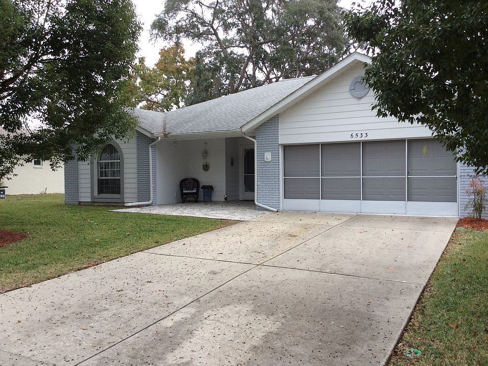 Very nice well maintained Expanded Oakmont, large open floor plan, tile floors in all wet areas, Berber carpeting Great room and both bedrooms, privacy door leading to the Guest bedroom with a large walk-in closet, double vanity in master bath, breakfast nook off kitchen with large pantry, brick pavers patio in rear, garage has laundry tub & pull-down stairs. Country Club, Restaurant, four Golf Courses, Pro Shop, Tennis, Pools, Fitness Room, Gated Community, Security, over 80 clubs an many activities, enjoy this fabulous 55+ Community. Repaired sinkhole with documentation, Roof 2006.