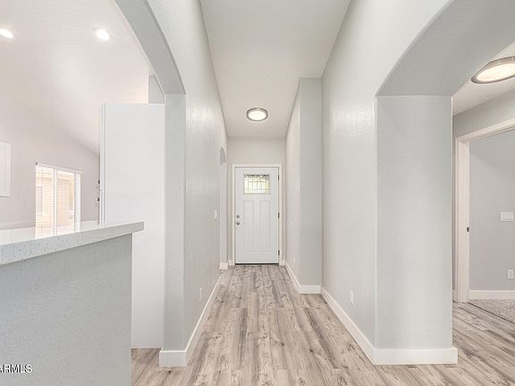 Fully renovated in 2025, this charming 3-bedroom, 2-bathroom single-level home features brand-new vinyl plank flooring, sleek stainless steel appliances, and updated cabinets/countertops in both the kitchen and bathrooms. The open great-room floor plan offers a bright and inviting space, while the North/South-facing lot provides optimal natural light. Enjoy low-maintenance desert landscaping in the front yard, and a spacious backyard with a covered patio—perfect for entertaining or adding a pool. Conveniently located near top-rated schools, parks, a community college, major shopping and dining, with easy access to Loop 202, I-10, Loop 101, and Glendale's premier sports arenas.