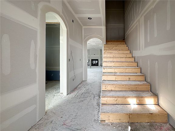 Welcome to County Line Square, a new Springdale community steps from Shaw Family Park with a pool and pavilion for residents. The entry opens to a guest bedroom or office and a full bathroom on the left, giving you flexible space for visitors or work. The hallway leads into an open living and dining area with a stone fireplace as the focal point and engineered wood floors throughout the first floor. The kitchen connects to the living space and includes a large island, 3CM granite countertops, cabinets to the ceiling, GE Profile stainless steel appliances, and a pantry. The main level primary suite features a vaulted ceiling and a bathroom with a double vanity and centered makeup vanity, a walk-in shower, and a large walk-in closet that connects to the laundry room. Upstairs offers 2 bedrooms and a full bathroom. Enjoy the covered back patio and a spacious 3-car garage. A fence, gutters, and blinds are included. Builder’s preferred lender is offering $3500 toward closing costs or a rate buy down. *Agent Owned*