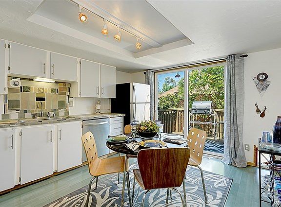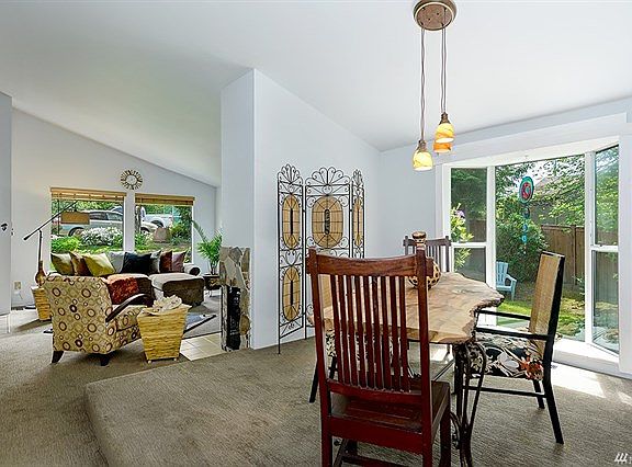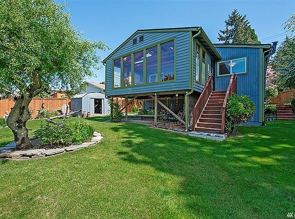 West Seattle 3 bd, 2 ba. wood burning fireplace with formal dining area and eat in kitchen. Patio off of kitchen for barbecuing, lounging, pond and beautiful gardens. Large back yard w/greenbelt view, 2 generous side yards and sloping front yard.