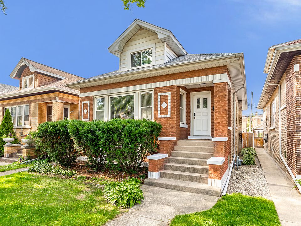 Solid brick bungalow in the heart of Berwyn. This property is in move in condition featuring fresh paint throughout. Brand new carpeting on both levels. Gleaming hardwood floors in the living room and dining area. White cabinetry, laminate floors and granite counter tops in the kitchen. 2 Bedrooms and a full bath on the main level. The 2nd level features a loft area, 3 additional bedrooms and another full bath with ceramic tiled finishes. White trim and doors. Full unfinished basement with exterior access offers plenty of storage or potential living space if finished out. Other amenities include a fully fenced yard, rear patio and a 2 car detached garage. Ready for new owners!