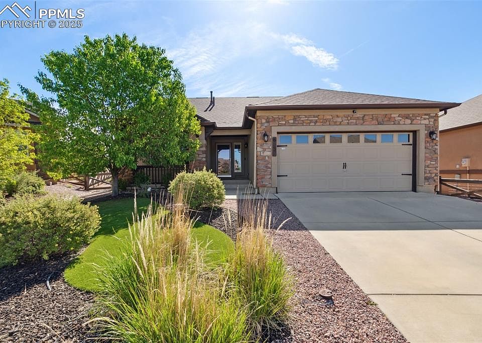 **Roof replaced in 2022 with Class 4 Shingles**Equipped with Whole Home Air Cleaner & Steam Humidifier**Updated Window Shutters Throughout** This beautiful 4-bedroom, 3-full bath rancher is just what you’re looking for! This home perfectly blends comfort and functionality in the desired Banning Lewis Ranch neighborhood. Enjoy main-level living with plenty of room to entertain and grow. Set in a quiet cul-de-sac, this home is close to many community amenities including the clubhouse, tennis courts, schools, playgrounds and many walking and biking trails. Walking in, you’re greeted by elegant wood floors and you'll easily flow into the open space of the kitchen and living room areas. The gourmet kitchen boasts granite countertops, stainless steel appliances, and ample cabinetry and pantry space. Move to the vaulted ceiling living room and picture the atmosphere as you lounge in front of the gas fireplace. Walk out to the covered porch area so you can sip that morning brew with a xeriscape yard and pull-down screen for added privacy. Stepping back into the home, you’ll be happy to know your main level living is complete with a full primary bedroom that basks in loads of natural light. The 5-piece bathroom and walk in closet make this primary bedroom a homeowner’s dream. The other main level bedroom is conveniently located adjacent to the primary, as is the laundry room. Making your way down the stairs to the basement level, you’re greeted by an open space that includes a wet bar that’s perfect for relaxing or entertaining. The basement level also includes a full bath and two additional bedrooms with plenty of closet space. The updated window shutters throughout add a touch of sophistication to every room. Breathe easier with the installed Trane CleanEffects® Whole Home Air Cleaner. Plus, savor the significantly upgraded Air Conditioning Unit and Furnace whose higher performance ensure comfort year-round. This home is meticulously maintained and move-in ready.
