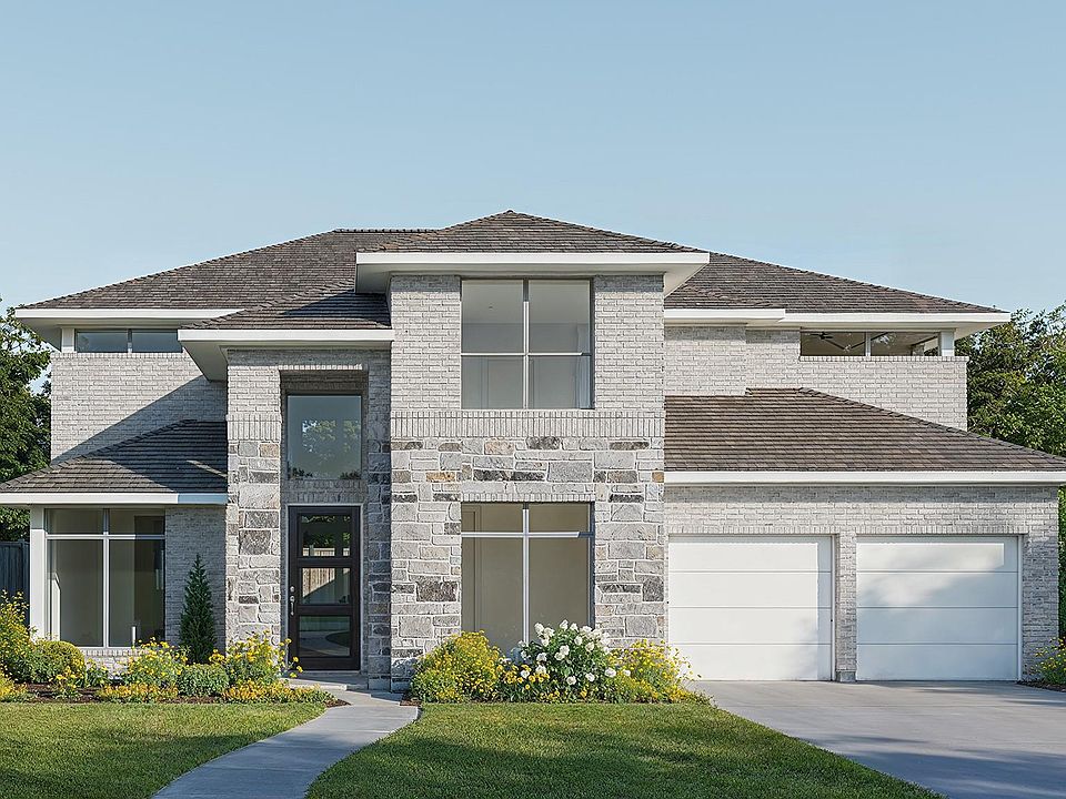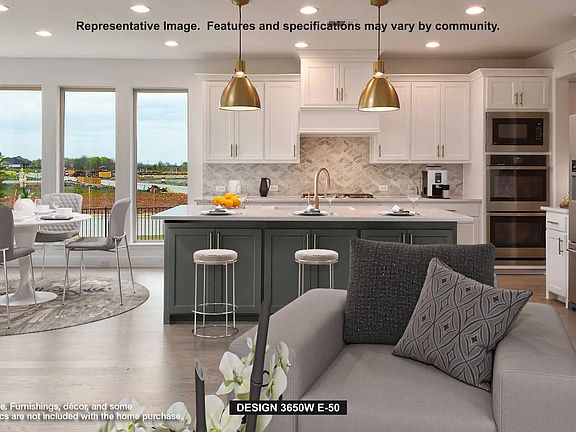 Two-story rotunda entry features curved staircase. Formal dining room and home office with French doors frame entry. Two-story family room with a wood mantel fireplace and wall of windows opens to kitchen and morning area. Kitchen features large walk-in pantry, butler's pantry, a 5-burner gas cooktop, and island with built-in seating space. First-floor primary suite includes bedroom with wall of windows. Dual vanities, freestanding tub, separate glass-enclosed shower and two walk-in closets in primary bath. A second bedroom is downstairs. Upstairs highlights a game room, media room and guest suite with private bath. Extended covered backyard patio. Mud room off three-car garage.