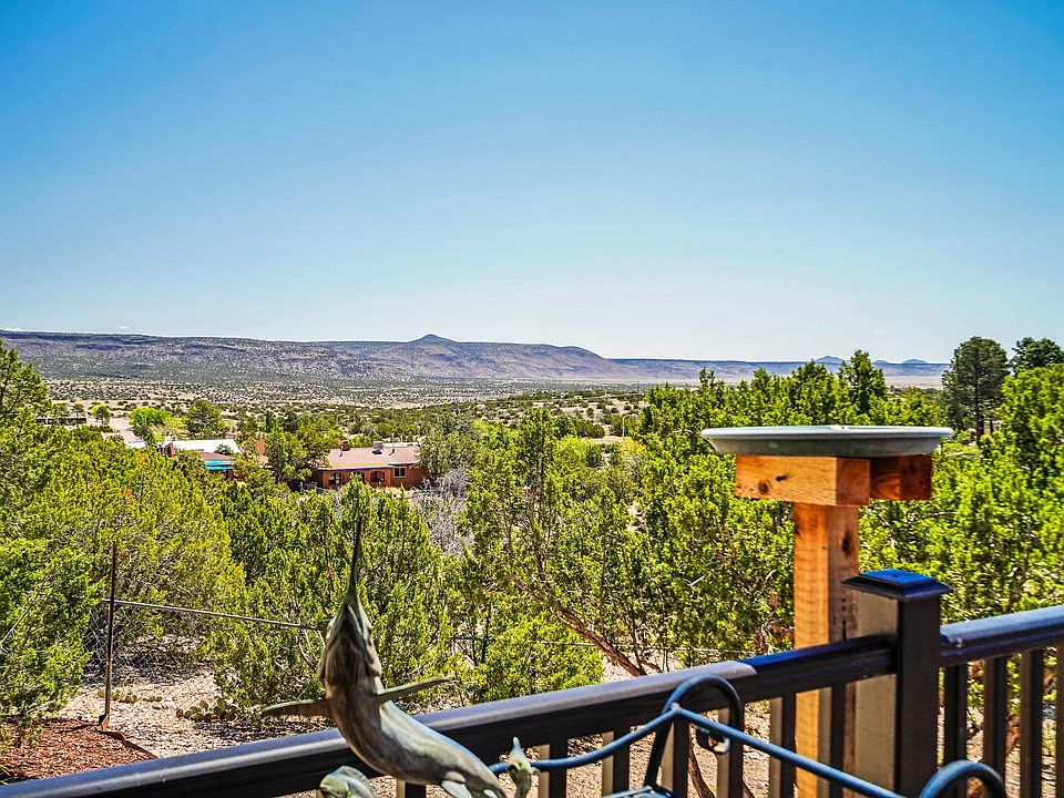 Discover a truly exceptional Cochiti Lake home, fully remodeled in 2023 and thoughtfully enhanced since! Perched on a ridgeline in a peaceful cul-de-sac on a generous .93-acre fenced lot, this property offers unparalleled peace and quiet with breathtaking views toward La Bajada Mesa and Tetilla Peak, especially from the spacious Trex deck off the kitchen. Experience the magic of dark skies, the Milky Way, and vibrant constellations right from your own backyard.