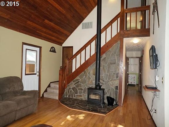 Great starter home with tons of windows, vaulted ceilings in the living room & dining area, three bedrooms and an oversized, detached garage with wood storage. Laminate flooring in living room, and hallway. Vinyl Flooring in Kitchen, dining area & Bath. Fully fenced private backyard with a side deck and a front deck to soak up the southern exposure. Metal Roofs installed too. Use of pool and tennis courts in Timberline Rim.No CC& R's.