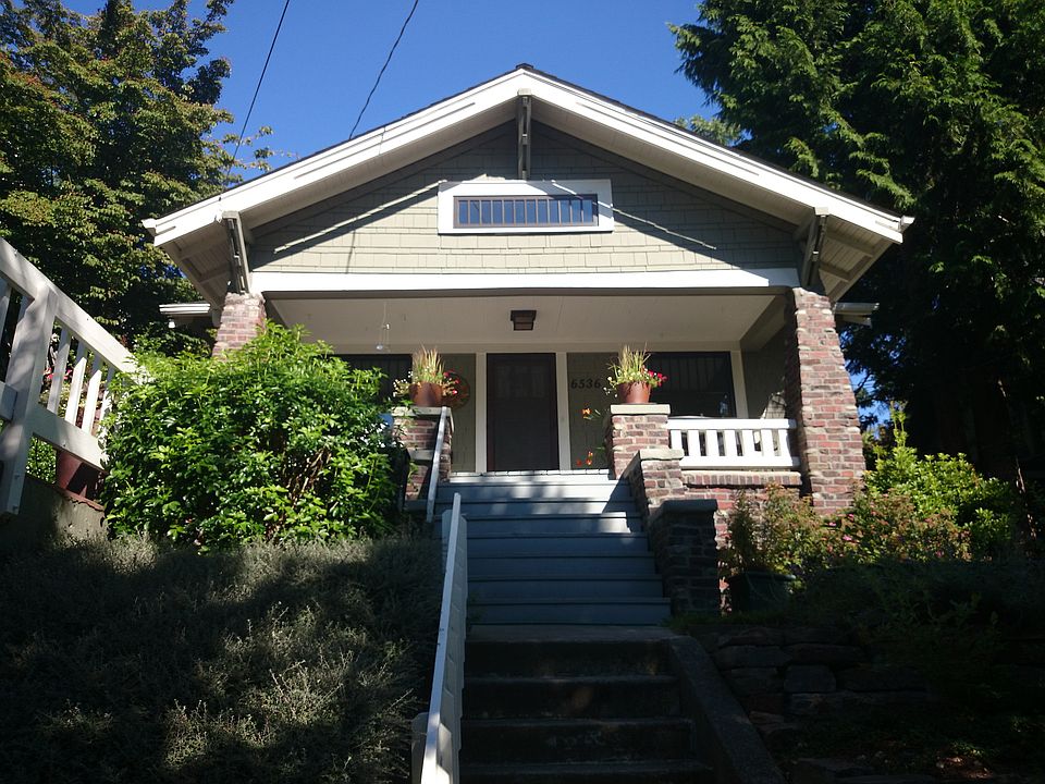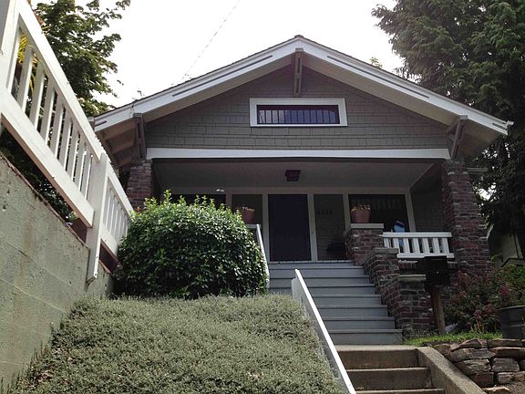 This pristine craftsman sits high off the street and commands attention with its grand dayrooms with box beam ceilings, substantial moldings wood strapped windows and hardwood floors. 2-bedroom on main floor are large with ample closets, tasteful kitchen with 3/4-bath. Unfinished basement is huge and boasts high ceilings-great expansion potential. Detached garage and wonderful patio area complete this home.