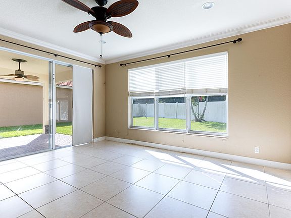 Like new washer and dryer. This home has full hurricane protection for all openings. The large backyard has a fully enclosed white PVC fence and plenty of room for a large pool. The backyard also has a large covered lanai/patio which is great for grilling and entertaining. This community offers many amazing amenities including a manned guard gate, resort style pool, jacuzzi, spa, fitness center, playground and picnic area tennis, and more. All for an extremely low monthly HOA.