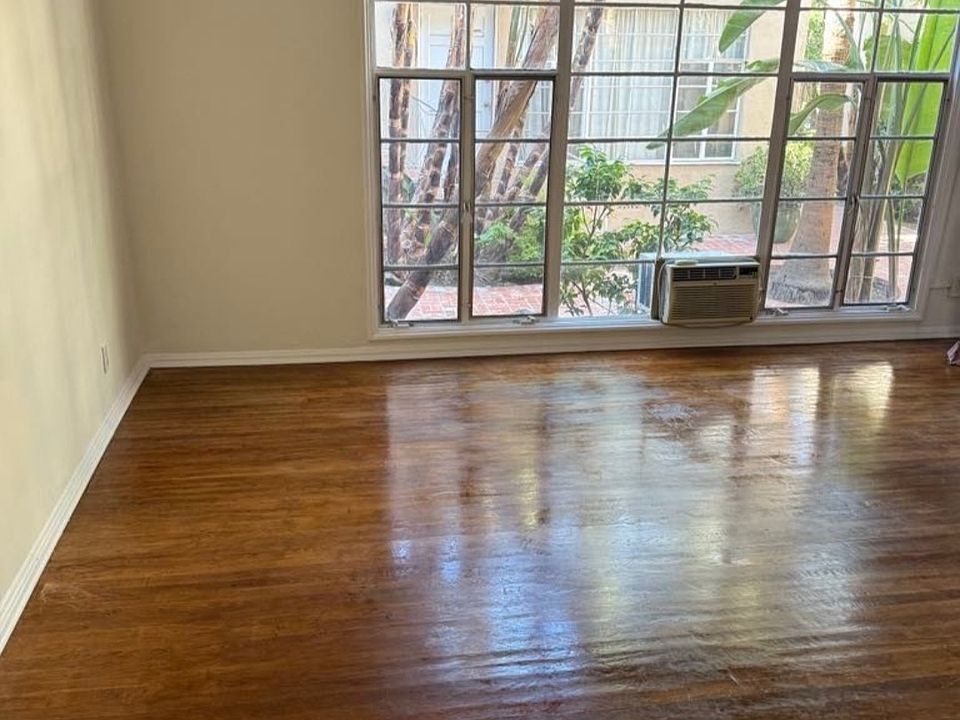 Live in the Heart of Hollywood! Studio $1,575 Spacious and full of vintage charm, this bright studio in the heart of Hollywood features hardwood floors, high ceilings, a huge floor-to-ceiling window overlooking a tropical courtyard, and a large kitchen with room for a breakfast table. Street parking by permit only The bathroom includes both a tub and shower plus a separate vanity/dressing area, and there's plenty of storage with a built-in chest of drawers and a big closet. Onsite laundry and pet-friendly!