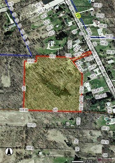 Nearly nine wooded acres available. Irregular lot features 28 feet of frontage with driveway on Manchester Road that opens to 600 feet of frontage square in size.