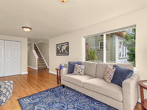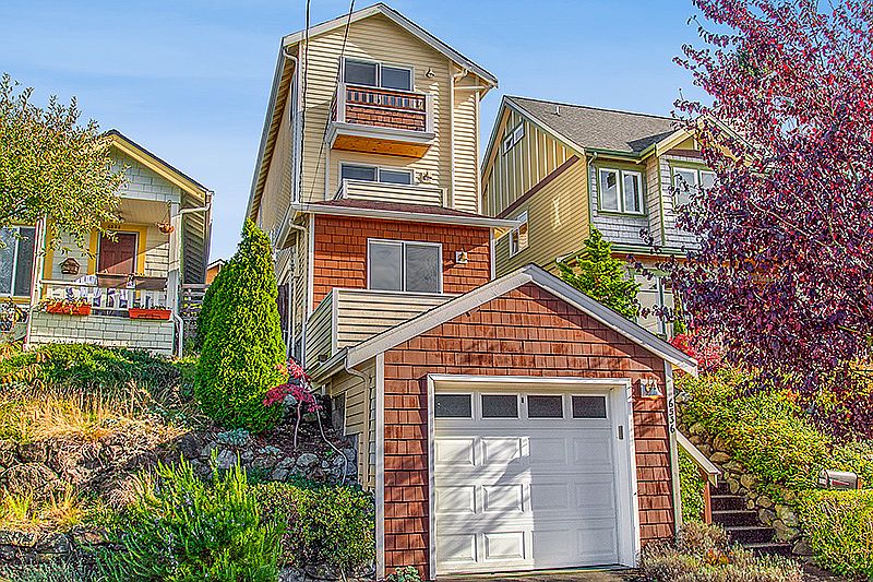 Phinney Ridge luxury designed specifically for the remarkable westerly views & to capture abundant natural light. Enjoy glorious, unique sunsets over the Olympics, receding behind new peaks as the seasons change. Relaxing summers on the patio never get too hot thanks to prevailing SW breezes. The master suite, with skylights & windows on 3 sides, feels like a tree house & you'll wake each morning to greet the world while feeling on top of it. Other highlights include upgraded heating & flooring, 2 view decks, new paint, fully-fenced patio/garden, professional landscaping, attached garage & much more. Situated on one of the most sought-after streets in the neighborhood with exciting shops, cafes & pubs just a few blocks away, this home is a must-see.