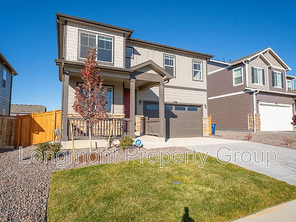 The stunning Carriage Hills former model home could be yours! Enjoy the beautiful mountain views from the covered patio in your private, totally landscaped backyard with 6' cedar fencing included! This beautiful designer home offers a spacious, open concept floor plan with 4 large bedrooms, walk in closets, 2.5 baths, a sumptuous kitchen and a main floor study/flex space. The elegant Kitchen is equipped with contemporary gray cabinetry, white quartz counter tops, a complete suite of stainless steel appliances, and a walk in pantry to die for! The added convenience of an upstairs laundry. Along with a tank-less hot water heater, and dimmers throughout the home. All this and in a terrific location, just steps away from Centennial Park, a mile from historic downtown Frederick and a hop, skip and a jump away from the new King Soopers! No Smoking. No Pets allowed.