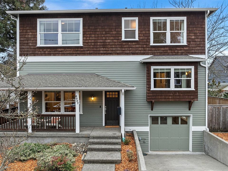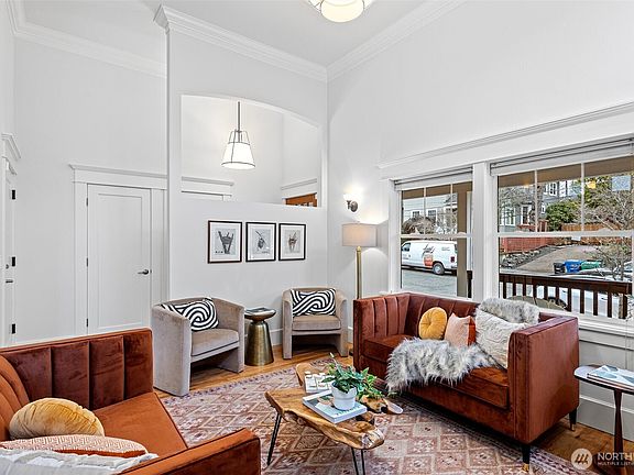 Nestled in Phinney Ridge, this well appointed classic lives large. Enjoy airy, light filled spaces throughout this 5 bed/3.25 bath home. Relax by the cozy fireplace in the living room, formal dining, and chef's kitchen with SS appliance suite. Entertain effortlessly as the french doors lead to the spacious backyard. This well cared for home features hardwoods, new interior/exterior paint, updated light fixtures, central air heat pump for comfort. Relax in the large primary w/ensuite bathroom, private balcony has partial Olympic Mtn views. Ample storage & 2 car tandem garage w/EV charger completes this gem. Close to numerous delicious restaurants, shops, amenities, Green Lake & more! Minutes to downtown/SLU, Ballard, UW, I-5. Move in ready!