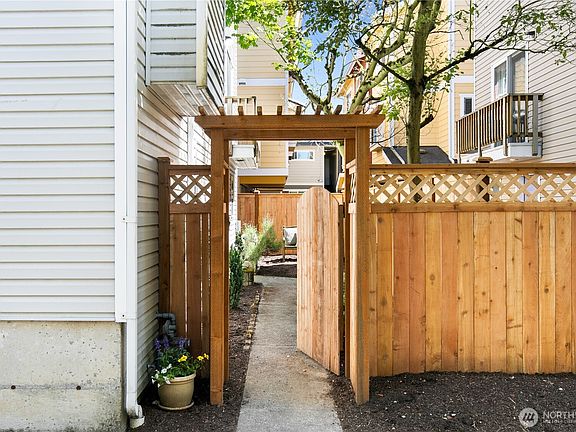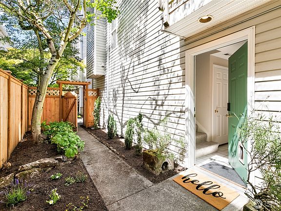 Classic Craftsman townhome just 2 blocks from Green Lake! A freshly landscaped garden entry leads to a light-filled home with great flow & space to relax. The large eat-in kitchen with brand new gas range & fridge opens to a Juliet balcony—perfect to take in the summer air or for a kitchen herb garden. The open living/dining area features hardwood floors & a gas fireplace nook for cozy entertaining. Upper level with vaulted ceilings throughout. Primary suite includes a walk-in closet. Fresh carpet, vinyl, & interior paint. One-car garage offers convenient parking + storage. Nestled in a charming community near vibrant restaurants, shops, the Green Lake trail, playing fields and tennis courts. Easy walk to Whole Foods, PCC, & the Light Rail.