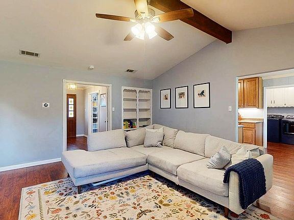 Adorable Holiday Hills gem nestled beneath mature trees with beautiful brick elevation! Inside you will find 3 bedrooms, 2 full baths, and 2-car garage. A flex space situated between the entry and kitchen makes the perfect sitting area, formal dining, or home office! Upgrades and amenities include rich laminate flooring throughout main living areas, designer paint tones, spacious family room with cozy brick fireplace, convenient built-ins, and a vaulted beamed ceiling, both baths completely updated, extensive crown molding, split secondary bedrooms for added privacy, and MORE! Kitchen boasts an abundance of cabinetry and counter space, an electric cooktop, and eat-in area. Primary retreat secluded at the rear of the home offers a luxurious ensuite with dual sink vanity, frameless shower, and generously-sized walk-in closet. Two secondary bedrooms on the opposite side of the home share a full hall bath. Huge private backyard with mature shade trees is complete with an expansive patio area perfect for entertaining!