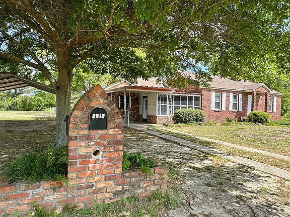 1950 Brick home with 1632 sq.ft- 3 bedrooms and 1.5 bath on .76 acres. Screened porch, separate bedrooms, large living room w/ firplace and gas logs. Dining room has french doors opening to large patio leading to a spacious back yard. Plenty of room for a large garden or even an additional dwelling. Land is unrestricted so mobile home is allowed. RV & motor home hook up, and small barn. Lots of potential.