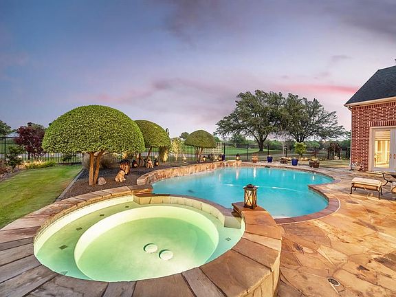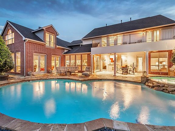 Absolutely stunning property with spectacular views of Prestonwood Country Club in Plano. Perennial plants are just beginning to blossom in the yards. Enter to soaring ceilings and hand scraped hardwoods. Formal living has views of the backyard oasis and golf course. Kitchen features center island, built in fridge and a spacious breakfast bar. Off the kitchen there's a powder room w unique pedestal sink. There's also a room w desk perfect for bill paying or recipe perusing. The light and bright family room features a stone fireplace and recently installed Pella doors leading to pool & spa. Master down w spa like bath. Upstairs are 4 bedrooms, 4 baths, game room, media room & spacious office with fireplace.