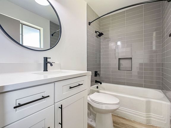 Stylish lighting fixturesBright and crispBrand new quartz countertopsNew vinyl plank floorsRemodeled tiled bathroom