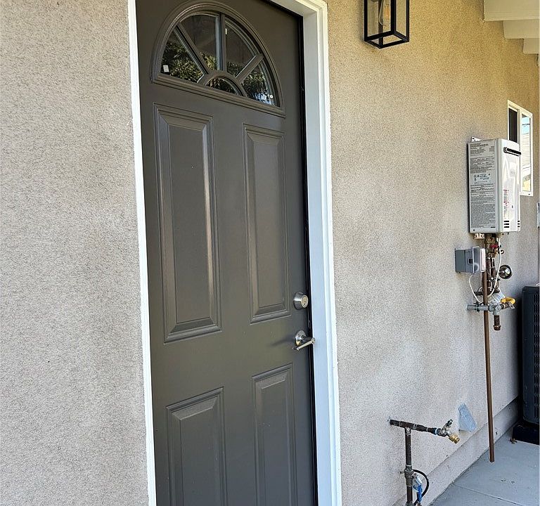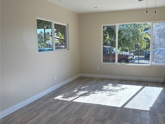Welcome home to this beautifully remodeled 3-bedroom, 2-bath unit located in a well-maintained triplex. One of three units currently available, this home sits on a beautiful lot featuring mature fruit trees and a large shared yard perfect for relaxing or enjoying time outdoors. Inside, you'll find an open-concept kitchen, a spacious living room, and updated finishes throughout. The primary bedroom is generously sized and includes double closets and a private en-suite bathroom. The unit also offers its own private laundry room for added convenience. Parking includes two designated spaces on the property, with a possible third space depending on vehicle size. Situated in a quiet residential neighborhood within walking distance to a lovely nearby park. Please note, no pets allowed.