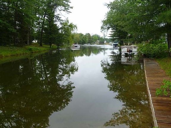 Great piece of water front property with access to Chain of Lakes. Great view of the no wake channel and passing watercraft while on your elevated deck or front yard. Two good sized bedrooms with closet space. The walkout basement provide plenty of opportunity for the homeowner. Nice knotty pine paneling in the living room with good sized kitchen for the family.Irregular shaped lot.