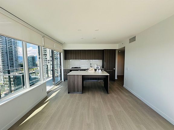 This corner residence, spanning approximately 902 sq ft, features a well-appointed 2 bedroom and 2 bath + Den layout; bathed in natural light through expansive windows and complemented by a spacious balcony, this home exudes brightness and openness. Features Air-conditioning, engineered countertops, Meile and Fulgor Milano appliances, LED lights and bright atmosphere. Amenities include Concierge & games room, karaoke room, gym, yoga studio, Theater with outdoor lounge! Just steps to Metrotown shopping Mall, Skytrain, Study Room, Yoga Studio, Crystal Mall, Library, Central Park with tennis courts, walking trails and much more. 1 parking spot and 1 Locker included.