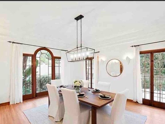 Nestled in the tranquil foothills of Hollywood, this meticulously restored home is a rare opportunity to own a piece of Hollywood's Golden Era. Elegant and timeless, it has been thoughtfully maintained, preserving its classic charm while offering modern comforts throughout.As you step through the beautifully crafted wooden front door, you're immediately greeted by soaring ceilings, rich hardwood floors, and a stunning wrought-iron staircase that sets the tone for the entire home. The spacious, light-filled layout is perfect for both grand entertaining and relaxed everyday living, with formal living and dining rooms that flow seamlessly from the grand entryway.The heart of the home is the bright, airy kitchen, featuring an expansive island with breakfast bar, ample cabinetry, and generous counter space ideal for preparing meals and casual gatherings. A cozy den, just off the kitchen, offers French doors that open onto a peaceful backyard retreat, providing a serene escape for both family and guests.Upstairs, a sweeping staircase leads to three oversized ensuite bedrooms, each offering privacy and comfort. The master suite is a true sanctuary, complete with two private balconies offering stunning views, and a large walk-in closet designed for ultimate convenience and storage.Every inch of this home exudes elegance and sophistication, blending Hollywood history with modern luxury in an unforgettable setting.