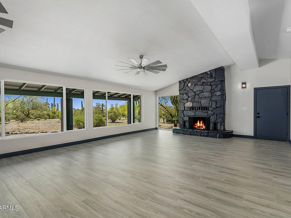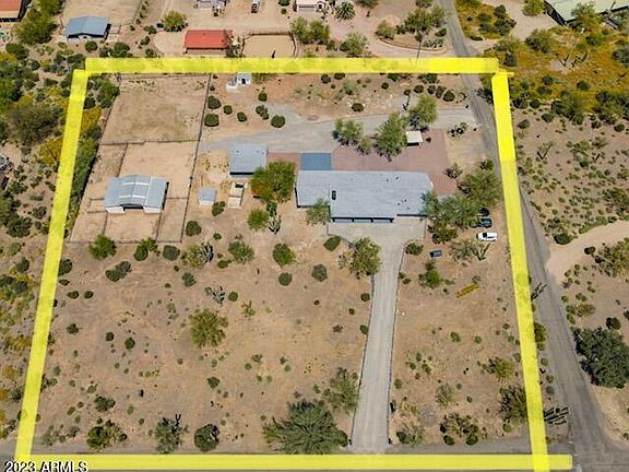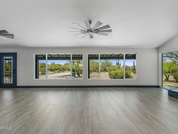 Welcome to Cave Creek! GOING, GOING...but no gone yet. The property is contingent to the Under Contract buyer putting their current property under contract. Seller will entertain back-up offers. This amazing 2+ acre horse property is located less than a 5-minute drive to downtown Cave Creek and all its attractions. The main house is 2,267 sq. ft. and features 3 bedrooms and 2 bathrooms. This home has just been completely renovated, not just aesthetically, but a complete ''infrastructure'' redo from new plumbing, electrical, 5-ton HVAC and ducting, windows, new roof, etc. The floor plan is an open concept kitchen-great room layout. The kitchen boasts new stainless appliances, recessed lighting, and a stunning quartz waterfall island featuring pop-up electrical outlets and USB charging. The fireplace in the great room will have your eyes competing with the beautiful window views of your property and surrounding mountains and vistas. Now, onward to your primary bedroom and bathroom. The primary bedroom boasts a large walk-in closet with washer and dryer. The bathroom is an interior designer's dream featuring a huge floor-to-ceiling shower with multiple shower heads, and custom glass wall. For a more relaxing touch, check out the stand-alone deep soaking tub! Oh, and there's a above ground outdoor spa as well. The attached garage, tastefully finished, includes shelves, cabinets, a sink, and washer and dryer hook-ups for and additional washer and dryer. The Casita, is approximately just under 300 sq. ft. and you'll note the same attention to detail extends through it as well. There's also an additional 75 sq. ft. outbuilding that has been refinished. Last, but surely not least, - this is a horse property which features a 4-stall barn, multiple corals, washing area, and free-standing tack room. Thinking of doing more with this property? take a look at the aerial photos and let your imagine run wild! Location, location, location!