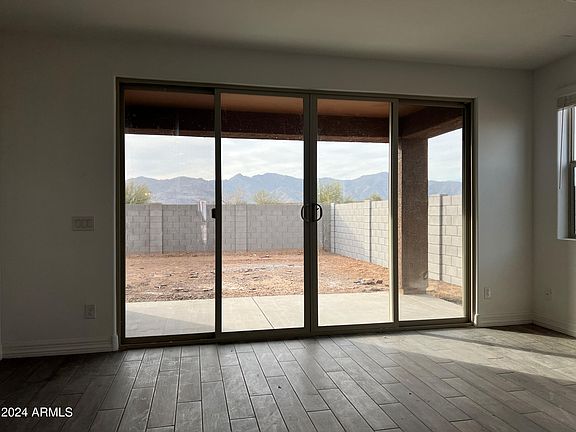 This beautiful home back towards the White Tanks Mountains on large homesite with no neighbors behind you. The beautiful floorplan has a 3 wide garage, 4 bedrooms and two and a half bathrooms. 9' ceilings, wood plank style tile floorings throughout the home, 8' interior doors, gourmet kitchen package, kitchen tile backsplash, huge island and multislide glass door for amazing indoor-outdoor living makes this home the perfect spot to entertain! This home is built zero energy ready with spray foam insulation, 2 x 6 construction and 85% offset solar system included not leased owned outright, giving you a HERS rating in the single digits! This home is ready now!