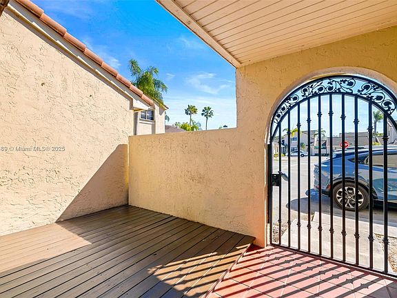 Back on the Market! Discover the cutest townhouse in The Moors! This charming two-story home offers 3 bedrooms, 2 bathrooms, with 1 bed and 1 bath on the first floor. The kitchen overlooks a cozy courtyard patio, plus a second back terrace—perfect for relaxing or entertaining. Features include a full-size washer/dryer and fresh paint. Located in a gated community with amenities like a gym, pool, and parks. This fee-simple townhouse is a rare find in Miami! Schedule your showing today!