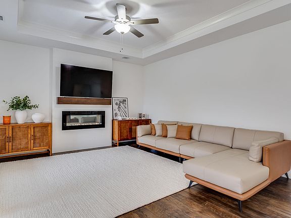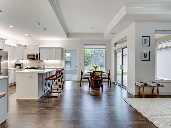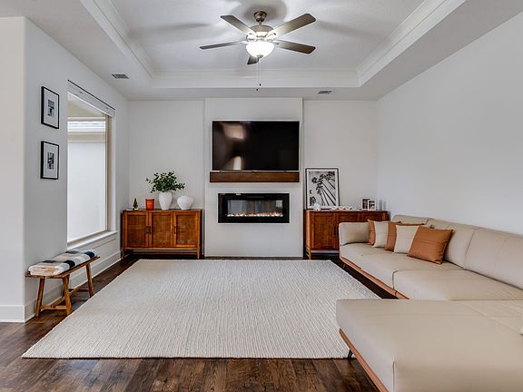 Welcome to your maintenance-free patio home in the highly sought-after Courtyards at Estancia, just east of 37th & N Ridge Road. This thoughtfully designed 2-bedroom, 2-bath residence offers carefree living with upscale amenities and serene outdoor spaces. "Shows like a Model Home" Step inside to discover luxury vinyl flooring, an open living room with tray ceiling, and a stunning floor-to-ceiling porcelain tiled fireplace with a color-changing electric insert. The spacious kitchen is perfect for entertaining, featuring quartz countertops, ceramic tile backsplash, eating bar, pantry, and all appliances—plus an adjoining dining room for gatherings. The master suite offers peaceful views of a tree-lined backyard and a glimpse of the pond beyond. Enjoy a walk-in shower, walk-in closet, and extra linen storage. A split bedroom layout ensures privacy for guests, with a front bedroom and full bath. The 22x20 sheet rocked garage provides ample space for storage or built-in shelving. No basement? No problem—this home includes a steel storm shelter di located in the garage. Outside, enjoy a cozy covered patio just waiting for you and your new neighbors to come and visit. HOA dues cover mowing, sprinkler system maintenance, trash service, snow removal, and exterior upkeep (excluding roof, windows, and doors). Residents enjoy exclusive access to a clubhouse with pickleball courts, a heated saltwater pool, and indoor amenities including a kitchen, game room, and fitness center with cardio and resistance equipment.