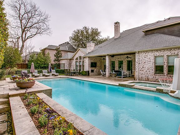 Beautiful Preston Hollow estate property completed in 2009. Interior lot within walking distance of St. Mark's school of Texas. Circle drive; huge two-story entry! Two staircases; main staircase with decorative wrought iron balusters. Gorgeous hardwood floors throughout the downstairs. Formal living room with stone fireplace and adjacent alcove with floor-to-ceiling windows, perfect for card table or intimate gathering. Beautiful study at the front of the house with one wall of built-ins. Guest bedroom downstairs with en-suite bath is currently being used as a work-out room, with wall of mirrors; interlock rubber gym flooring and walk-in-closet. Pass through wet bar with Viking wine cooler and ice maker. Small alcove for coffee bar and butler's pantry. Fabulous chef's kitchen is open to family room. Huge half-circle island with granite countertops. Commercial gas Wolf range with double ovens, six-burner cook top with griddle, Sub-Zero refrigerator, microwave and warming drawer. Breakfast room overlooks pool and play yard. A 7.2 Home Theater is located on the ground floor with elevated seating platform. Family room with soaring 20-foot ceiling has large picture windows also viewing the pool, and features cast stone fireplace with gas logs. Master bedroom suite downstairs with 20-foot vaulted ceiling, wood floors, and view of pool and yard. The spacious master bathroom with enormous custom closet is finished out like a department store with center granite island for storage and packing. Dual bathroom vanities, soaking tub, shared walk-in shower with double shower head, floor-to-ceiling mosaic tile and glass block window flooding the area with lots of light. Large game room and three upstairs bedrooms with en-suite baths. All bedrooms have walk-in closets and full slab granite counters in bathrooms. Bedroom #4 is split off game room and is generous in size. Bedroom #3 with mosaic tile shower. Bedroom #2 is the "princess" room with its own sitting area, en-suite bathroom with beautiful mosaic tile shower with rain shower head, huge walk-in closet with built-ins. Beautiful heated pool built in 2012, with attached spa and water feature, and beautifully landscaped! Pool bath connects to the house. Large utility room with door leading to motor court, sink and lots of cabinets. The 3-car garage opens to mud room with cubbies and additional storage. Expansive outdoor covered kitchen/entertainment area with stained wood plank ceiling, ceiling fans, woodburning fireplace, Viking grill and refrigerator. Electric gate in front and solid core doors throughout! Home is controlled by Crestron Automation System. Managed network including High Speed Wi-Fi extended coverage system. Outdoor entertainment system including commercial grade in-ground landscape speakers and subwoofer. Camera surveillance with remote access and recording. Mosquito misting system.