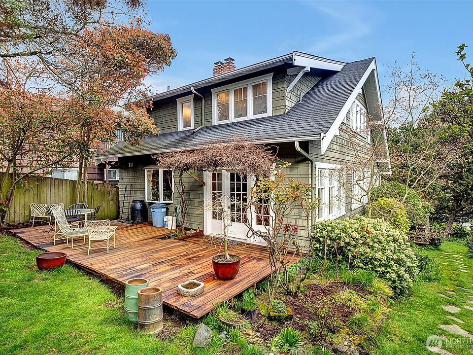 Charming restoration of this 1916 Craftsman style home w/Lake Washington and Mt. Rainier views. Wood floors throughout the main and upper levels. The spacious first floor includes the chef's kitchen with SS appliances, a large living room w/fireplace, the dining room and a home office. An open staircase leads to the second floor, with the primary suite bedroom/bath, the second bedroom and the 2nd bathroom. The unfinished basement has plenty of room for projects and storage. The home sits nicely above the street for a private feel - secluded rear yard, beautiful landscaping, front and rear decks and a detached garage. Walking distance to Seward Park and Martha Washington Park, on the bus line too.