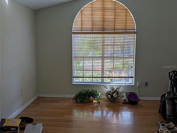 Located on a corner lot with mature trees for shade, this home has just had a new roof installed. Inside you will find an open Living room, dining, kitchen and bonus room that offers seamless flow from room to room with vaulted ceilings, with wood flooring throughout. Arched windows with paper filters in all areas allow light into the home without glare. Living room opens to the screened and spacious covered pool area for relaxing or entertaining with plenty of room. The two car garage offers plenty of room for workshop and storage.The primary bedroom has a walkin closet, a bathroom with jack & Jill sinks, tub and seperate shower stall. The door allows access to the patio area without going thru the house. Minutes from Champions Gate with world class golf courses, shopping, dining and entertainment. There is access to I-4 that allows easy access to go to Orlando to use area theme parks, Daytona Beach, Tampa and Orlando airports.