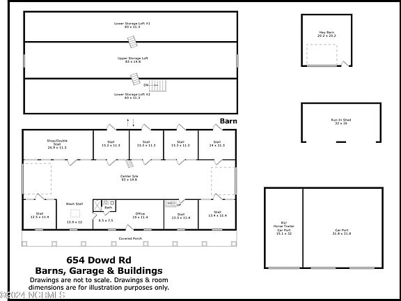 - Horse amenities: Boarding Facilities, Hay Storage, Pasture, Round Pen, Arena, Tack Room, Trailer Storage, Wash Rack, Barn