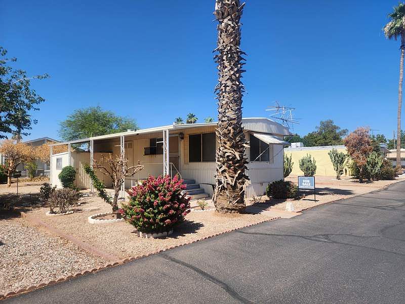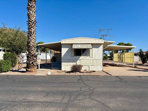 3 Months of Free Rent!!! This 616-square-foot manufactured home in San Tan Vista, completely furnished, features one bedroom and one bathroom, making it the perfect cozy retreat for a single individual or a couple. Built in 1979 by Lifestyle manufacturer, this home features a spacious living room, a master bedroom with plenty of natural light, and a functional kitchen equipped with an oven, fridge, microwave, garbage disposal, washer, dryer, and hot water heater. The home's exterior includes a carport for convenient parking and three sheds for extra storage space.Located in the charming community of San Tan Vista in San Tan Valley, AZ, San Tan Vista offers a peaceful and tranquil environment with stunning mountain views. The community offers a range of amenities, including a clubhouse, swimming pool, and fitness center, for residents to enjoy and socialize with their neighbors. With easy access to shopping, dining, and recreational activities nearby, San Tan Vista provides a comfortable and convenient lifestyle for its residents.