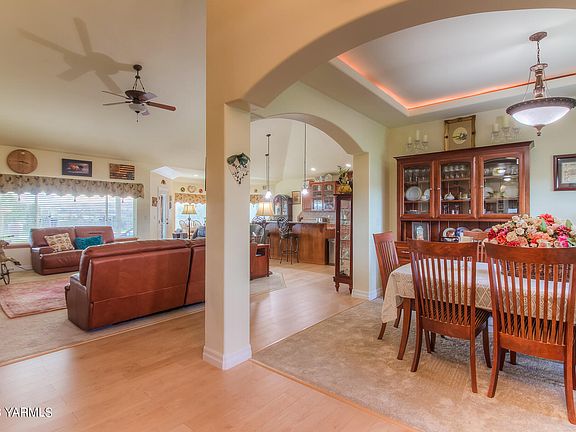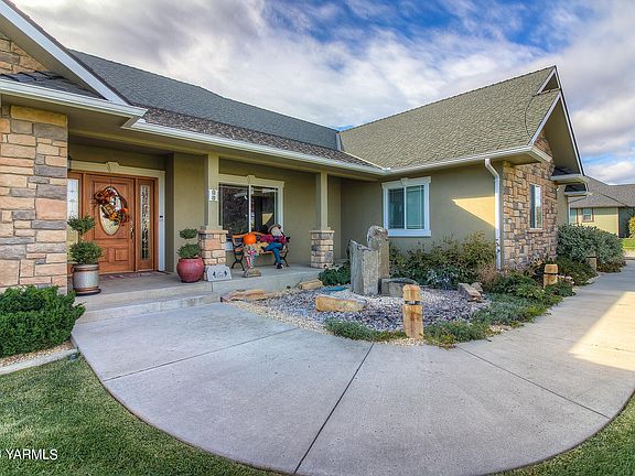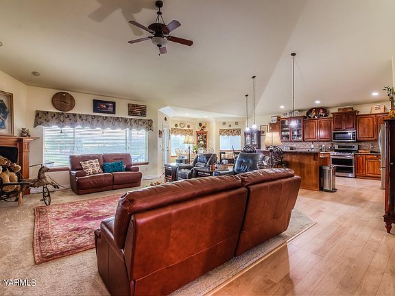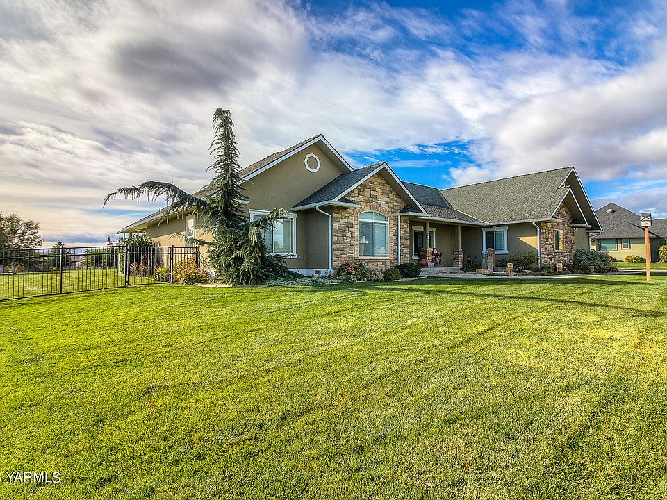 Classic Design! This welcoming home with a covered front porch is located on a beautifully landscaped one acre lot. The open concept shows off the wide foyer, large windows, as well as the vaulted and tray ceilings. The large living room is full of natural light, a corner gas fireplace with tile and wood mantel, and a door that leads to the partially covered patio. In the spacious kitchen you'll find all stainless appliances, granite counters, a large island, plenty of cabinets, some with pull-out shelves, and extra storage in the nearby walk-in pantry and broom closet. In addition to the formal dining room, there is a breakfast eating area and room to sit at the island. The office with a built-in desk, is located away from the commotion of the house activities. The primary suite has French doors to the patio, a lighted tray ceiling, a walk-in shower, double sink vanity and a walk-in closet. In the fenced backyard, is a gorgeous tiled in-ground saltwater pool and hot tub with an electric cover. In addition to the three car garage, a detached shop with 10' tall door will store your RV or a few extra cars. There are garage doors on both sides of the fully insulated shop, LED fluorescent lighting, and an upstairs storage area. Additional features include low voltage exterior lights, motion detector lights by pool, front door & driveway, ice dam heaters on roof, and an ornamental fence.