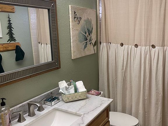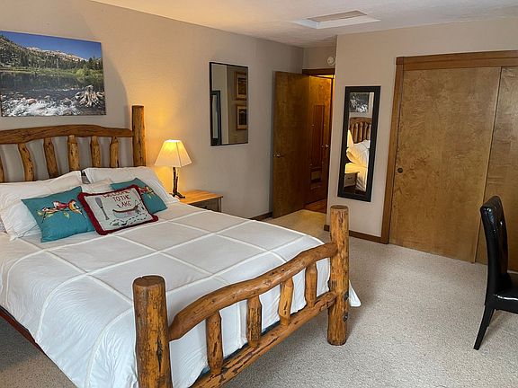 Feels like a cabin in the woods but only 5 minutes to town or skiing. Level entry with 2 car garage that leads to kitchen. Primary bedroom with walk in closet, fireplace and ensuite bath encompasses the entire top floor and feels like a tree house filled with windows. Baths and kitchen remodeled recently. The kitchen has alder, soft close cabinets, huge island, gorgeous granite and lots of storage. Vaulted ceiling and wood burning fireplace in living room with direct access to sunroom. Fully Furnished! Backup generator. 2 car garage has extra deep cabinets. Available to move in now!
