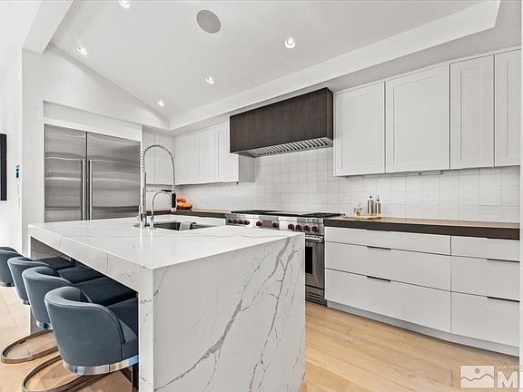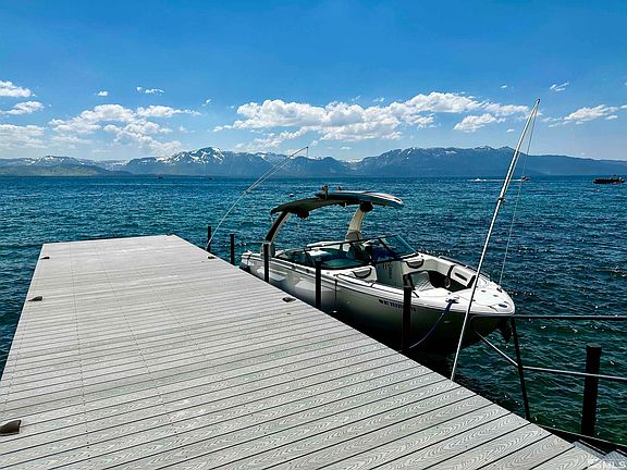 Amazing Marla Bay luxury lakefront estate perched on a secluded point offering incredible southwest and unobstructed views. This property has just completed an extensive renovation that includes the finest quality in style and finishes. Offering a mountain modern contemporary theme, you will be impressed with this Tahoe waterfront location with a recently constructed pier and huge waterfront patio just steps to the water., Marla Bay offers gated access to a half a mile of beautiful sandy beach and a private buoy field for homeowners. There are two legal residences offering a primary lakefront residence with 3 bedrooms, 3 bathrooms and a half bath with a two-car garage. In addition, the second residence offers 2 bedrooms with 1 bathroom, living room, fireplace and full kitchen. The property has an abundance of onsite parking for approximately seven vehicles. Both residences are offering brand new Restoration Hardware lighting throughout. The primary residence offers 3 linear gas fireplaces with gorgeous slabs with integrated TVs, heated bathroom floors, Richard Marshall fine flooring throughout both residences which consists of handmade, hand scraped, and hand finished custom walnut hardwood floors. Brand new custom-made walnut cabinetry in kitchen, laundry room, all bathroom vanities, bar, primary residence built-in bedroom closets and full kitchen in second residence. The primary residence kitchen truly offers the finest appliances for the discerning chef with brand-new free-standing, gas burning, Wolf 60 inch dual fuel pro range with six burners and infrared dual griddle and double ovens, 60 inch Wolf hood vent, built-in Sub-Zero 30 inch refrigerator column and 18 inch freezer column, Scotsman small nugget ice maker that produces over 80 lbs. of ice in 24 hours and stores up to 26 lbs., two Sub-Zero cove dishwashers, trash compactor and quartz stone countertops with a double waterfall island and coffee bar. The living room bar offers an 18 inch Sub-Zero wine refrigerator column, Scotsman nugget ice maker and 24 inch under counter Sub-Zero beverage refrigerator. This property offers a state-of-the-art full property Control 4 automation system, worldwide remote access capabilities to control the residences from either Wi-Fi and or cell phone. The system is integrated with 16 cameras throughout the property with network video recorders (NVR) for live backup storage of each camera, video door, intercom system, whole property Wi-Fi, all cameras are positioned to best secure each residence and one camera overlooking the dock to protect the boating life. The living room is set up with a 75 inch flush mounted TV with Dolby digital 5.1 surround sound system. There are a total of seven TV’s in primary residence and three TV’s in second residence all integrated with five different Apple TV systems and five Direct TV satellite systems. Additionally, the property features a sound system directed toward the dock level, back patio, and flush mount ceiling speakers throughout every room in primary residence and second residence, allowing for music or TV’s to be played and selected on a room-by-room basis. Total of six Control 4 flush mount 8 inch touch screens with video and intercom capabilities are located in each bedroom, plus kitchen & living room/bar area and second residence that provides full automation for every TV system, every speaker throughout the property, alarm system and video camera system. The Control 4 system also includes Control 4 lighting system with custom engraved back lit light switches and Lutron Shades to control the lighting and shade system remote or via touch screen and or at any TV throughout the property.