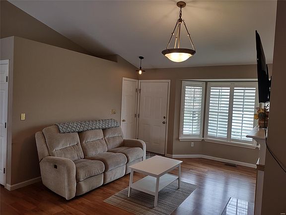 This beautiful 3 bedroom, 3 bath ranch home is waiting for you! Walk into open floor plan with beautiful wood floors, vaulted ceiling along with a cozy wood burning fireplace. Super open kitchen with custom cabinets and lots of counter tops and plenty of pantry space. No more carrying laundry down the stairs as you have a Main Floor Laundry! Spacious deck located off the kitchen with walk down to huge fenced yard. The Lower level has a finished family room, with a really cool bar area and a full bath. Also, in the lower level is two other finished rooms for possible office or kids play room or ???? This basement walks out to a nice sized patio and level yard. Newer carpet in 3 bedrooms and newer Dishwasher and Refrigerator. Located on a quiet cul de sac. Home is close to all of Wentzville's shopping and wonderful restaurants.