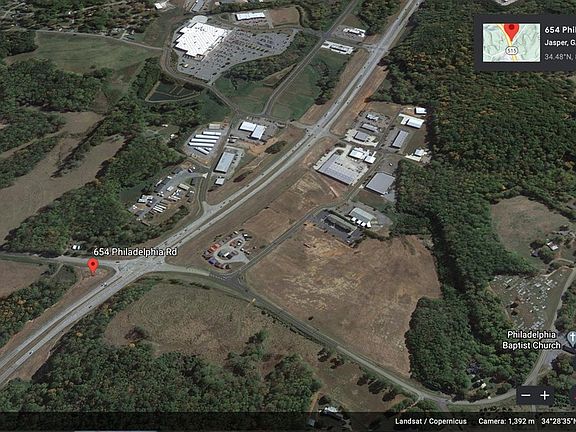 ZONED C2 Commercial in the City of Jasper. Corner tract fronting Highway 515 and Philadelphia road. High visibility intersection with a traffic light. A GAS STATION WITH CONVENIENCE IS PERMISSIBLE. Just North of Walmart shopping center which is quickly building out. This fast growing area of Jasper is ripe for your business idea. Annexed by the city of Jasper in 2008. Six inch water main across Philadelphia rd., Traffic counts from GDOT for Annual average daily count is approximately 26,000+. With 93 ft or road frontage on Philadelphia rd. and 887 ft on Hwy. 515 this tract allows for maximum visibility from Hwy. 515. New large single family development is just down Philadelphia rd which will soon increase the traffic by this corner. New Survey attached as well as the zoning letter. BRING THE OFFER!