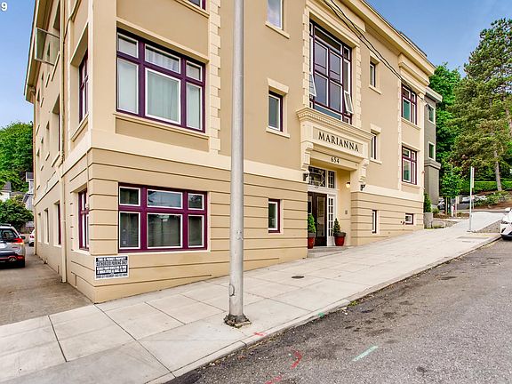 Stunning one-bedroom unit in the Marianna condominiums. Building has had complete restoration to the original period style and charm. One of a kind unit. Updated, electrical, plumbing, windows and interior finishes. Washer dryer in unit. Front-facing view unit on second level. Includes deeded off street parking space with separate tax number. Low HOA Dues only $250 per month! Great downtown location near Max and close to OHSU!