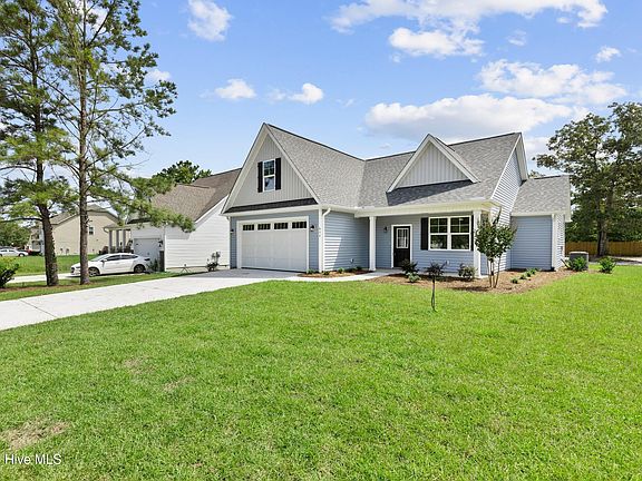 Discover coastal living at its finest in this new construction home built by custom builder Leader Homes in the desirable Seaside Bay community. Seaside Bay is ideally located between the vibrant cities of Wilmington, NC and Myrtle Beach, SC, offering easy access to coastal attractions and conveniences. 'The Seaside Bay' plan features an open concept layout filled with natural light. The spacious kitchen includes a center island with bar-style seating, a pantry, and an adjacent dining area—ideal for hosting or everyday living. This custom-designed plan showcases elegant LVP flooring throughout the main living area, high-end finishes, a vaulted ceiling, and tall base moldings. The kitchen is equipped with 42'' soft-close cabinetry, quartz countertops, stainless steel appliances, and bronze hardware and plumbing fixtures. The foyer entry is highlighted by wainscoting, adding an extra touch of style. The primary level includes three generously sized bedrooms and two full bathrooms, thoughtfully arranged in a split-bedroom layout for added privacy. Upstairs, the large bonus room includes a walk-in closet and can serve as a fourth bedroom, home office, or flexible living space—designed to accommodate a variety of needs. A covered porch off the great room extends the living space outdoors, offering a comfortable spot for relaxation or entertaining. Conveniently located just steps from the dining area and kitchen and adjacent to the porch, the grilling patio offers a dedicated spot for outdoor cooking while still allowing the cook to be part of the conversation on the patio or inside the home.The large lot provides ample space for outdoor enjoyment and future possibilities. The front yard is fully sodded, and the backyard has been graded and seeded on this large, treed lot, offering a blank canvas for landscaping or recreational features. Seaside Bay is a gated community with low HOA fees and extensive amenities including a fire pit, grill, picnic table, pavilion, day dock, and boat ramp on the Lockwood Folly River. Experience the charm of this coastal location, with pristine beaches and a range of water activities just a short drive away. Visit Seaside Bay to explore the blend of modern design and coastal comfort offered at an exceptional value. Ready for immediate occupancy.