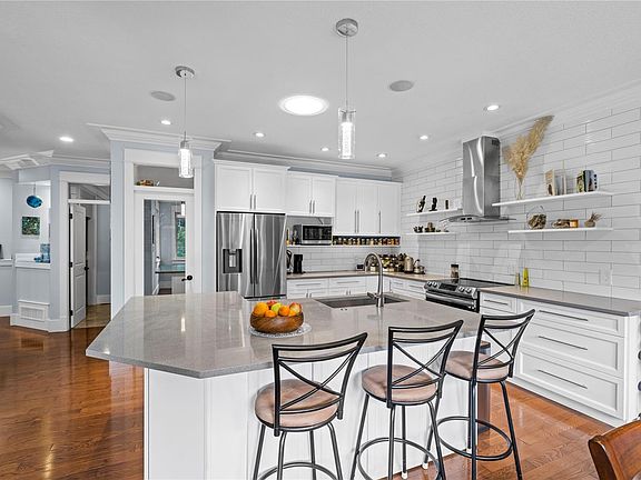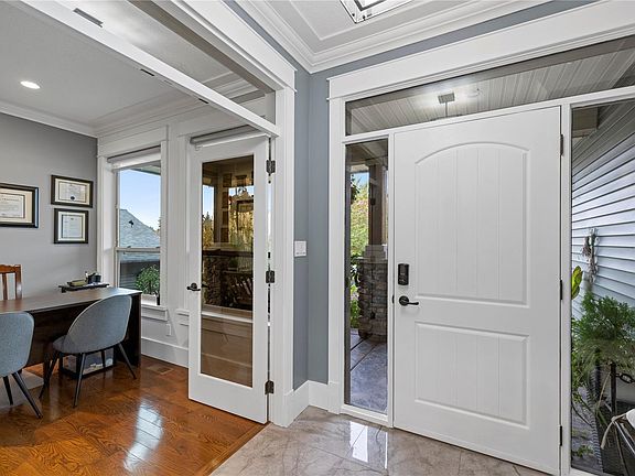 Stylish, serene, and super energy-efficient — this is the whole package. Updated 5-bed, 3-bath main-floor living home showcasing seamless indoor-outdoor living. The remodeled chef’s kitchen overlooks a sun-drenched south-facing deck, lush seasonal gardens, and a pastoral backdrop. A titled 30-ft deciduous tree buffer (between properties) offers privacy and year-round beauty. Inside: hardwood floors, consistent tiling, and a bright primary suite with spa-inspired ensuite. 9- and 10-ft ceilings plus transom windows and doors create an airy feel. Energy upgrades include a solar panel system (net-zero electricity bill last year), sun tunnels for natural light, and a ready EV charging station. The oversized 3-car garage/workshop features a 200-amp panel with a backup transfer to an external generator to power essential systems in the event of any power outages. Creature comforts inside, nature outside. A rare opportunity — book your showing today!