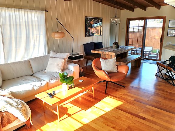 3 bd, 2 bath luxury cabin-style home + custom designed sunny office in separate building behind house great for remote working professional or artist. Enjoy refreshing ocean breezes in this JUST RENOVATED, extraordinary home, located in established Encinitas neighborhood just 1 mile from Moonlight Beach and a block away from Coastal Roots Farm and the YMCA. Schools in district (San Dieguito Union High School District): Capri Elementary (Dual Language), Diegueno Middle School, La Costa Canyon IB High School. Some of the unique features include: Office/studio in back yard, custom-designed with vintage windows and stained-glass Vaulted wood ceilings with a "cabin" feel Brand new kitchen with high end French door refrigerator Gas range stovetop Entire house freshly painted in light, designer "parchment" shade Two-person jacuzzi in master bath Walk-in shower in guest bath w/double shower Designer ceiling fans in all bedroom, living room, and outdoor office Stained glass windows, skylights, and vintage lights Stackable washer/dryer Three large patio areas Electronically-gated entrance Entire property fenced-in Two large Garden Boxes (room for more if needed) Space for RV/Boat, outdoor shed, and space for more garden Fenced-in back yard has soft grass and shady trees Dog or cat okay, although some breed restrictions apply. 1st and security for move in, plus pet rent (if applicable). Must see to fully appreciate. If interested, please complete Zillow's application and contact Megan for a showing. Owner does not live on site. At signing, renters will pay 1st and deposit. Also pet rent is required for pets (no pet deposit required). Approximate cost of utilities (estimated): $80 for water $31 for trash $150 or less for electricity Note: Landscaping is included and done monthly *9 or 18-month lease available. Longer-term lease also available.